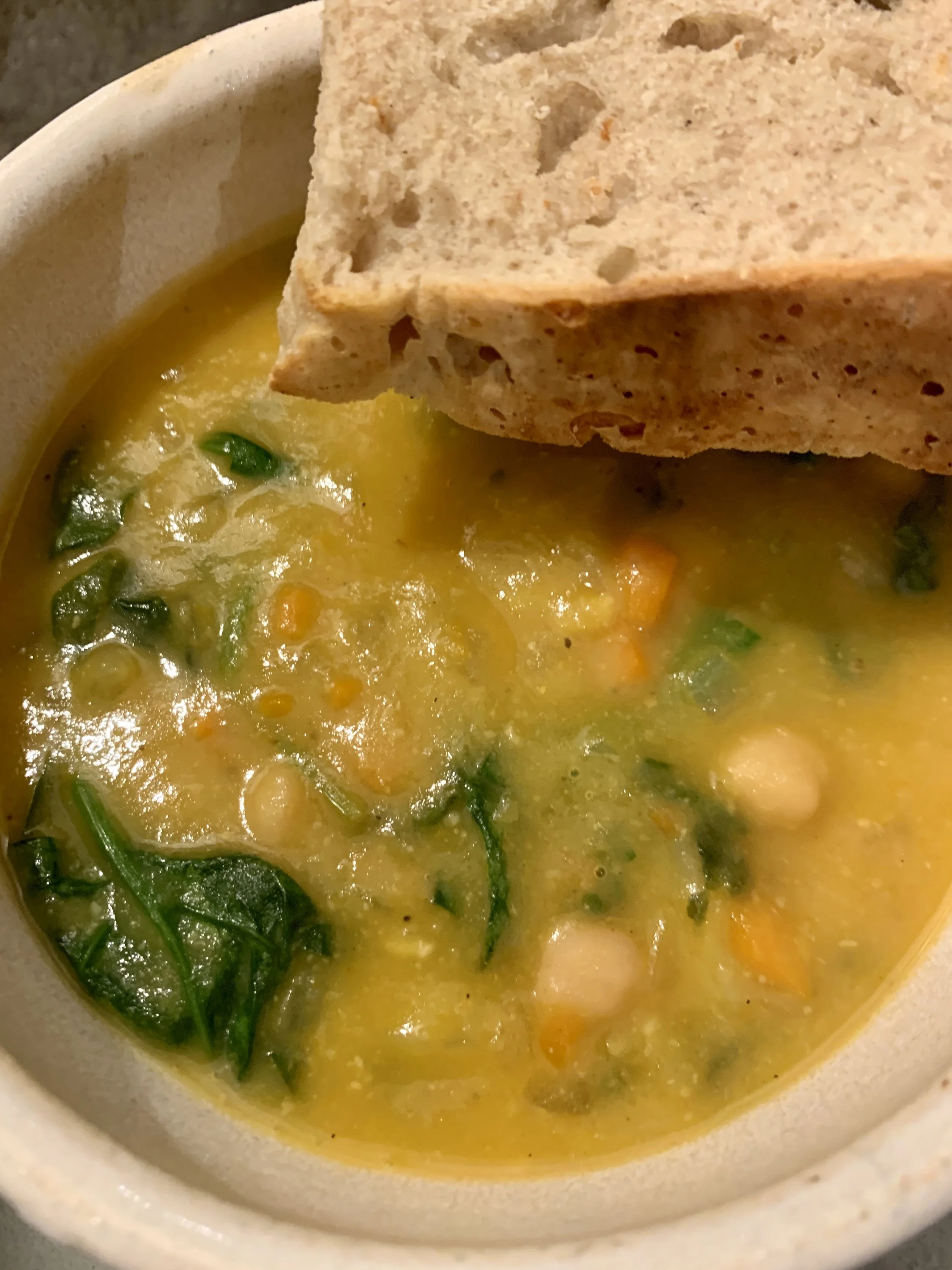 This soup from The First Mess is Lemony Chickpea Soup with Spinach and Potatoes.